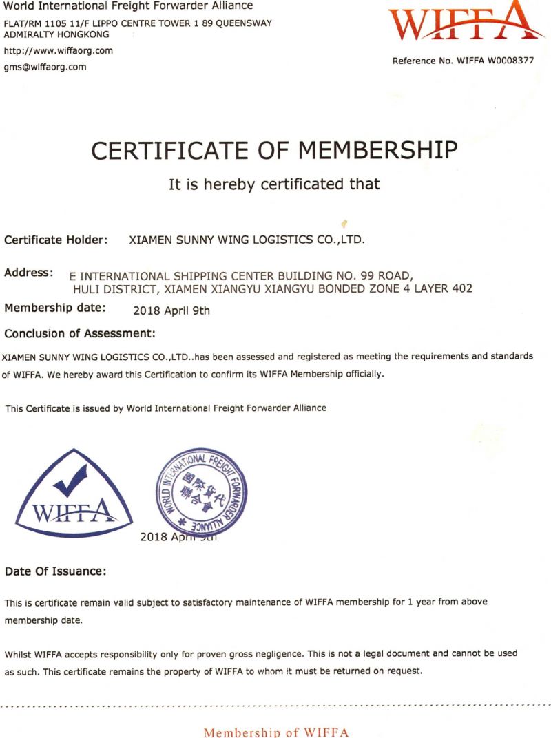 2018年4月9日,我司正式加入了国际货代联合会,成为WIFFA会员。